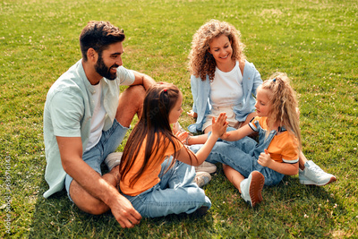 Happy family relaxing in the park