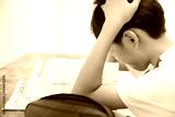 勉強する男子小学生や中学生 頭を抱えて悩む横顔