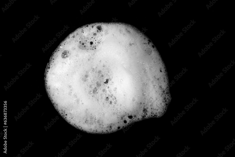 liquid white foam from soap or shampoo or shower gel Abstract soap bubbles. Set foam, soap bubble isolated on black, with clipping path texture and background.
