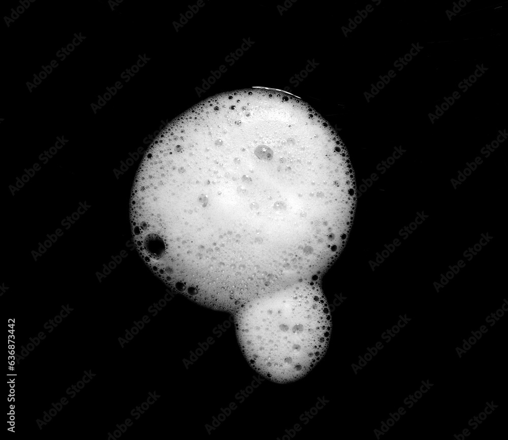 liquid white foam from soap or shampoo or shower gel Abstract soap bubbles. Set foam, soap bubble isolated on black, with clipping path texture and background.