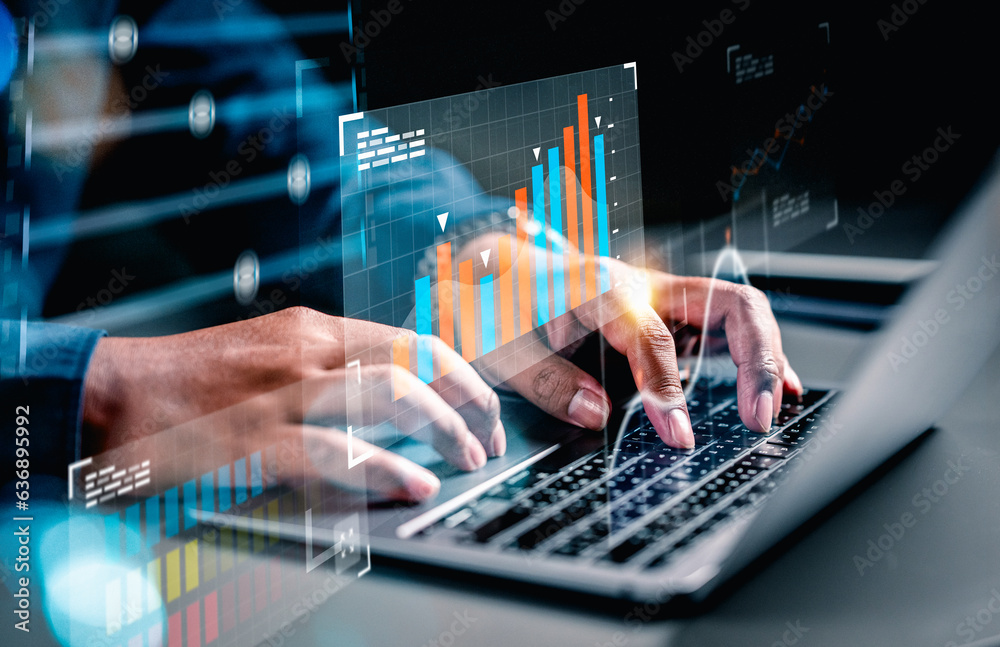 investment, graph, finance, financial, investing, technology, buy, sell, price, business. typing keyboard for invest into technology, then examine graph of benefit. for buy or sell that prices.