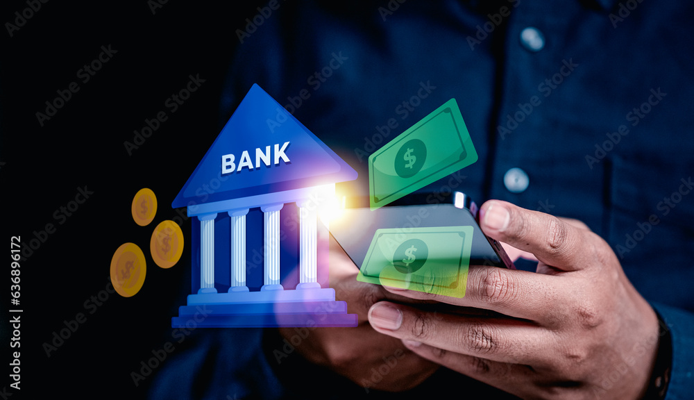 saving, money, banking, finance, investment, growth, tax, wealth, interest, loan. touching at smart phone to check my investment and interest rate of mine saving. wealth to growth up for retirement.