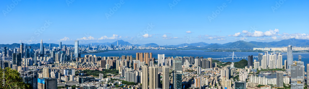 Shenzhen skyline and modern buildings scenery, Guangdong Province, China. panoramic view.