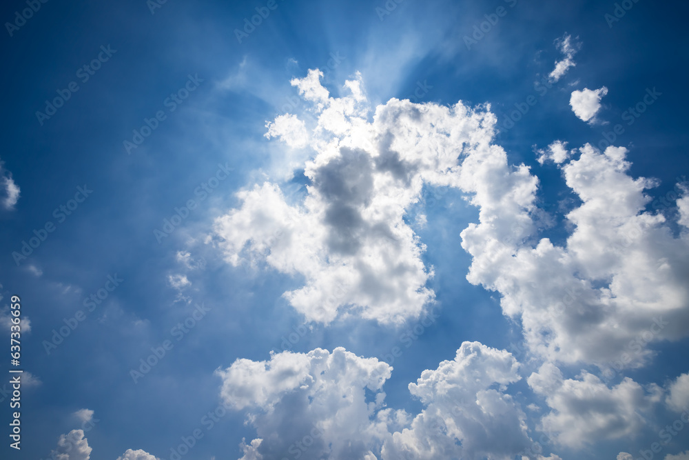 Blue sky and white clouds with sun. sky clouds nature background.