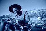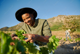 Happy young multiracial couple in casual clothing doing agricultural activities next to plants on farm