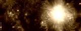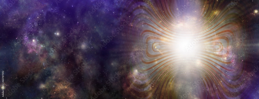 Energy Wave Phenomenon In Deep Space Concept Background - massive beautiful reverberating energy light frequency wave on right side radiating out into deep space