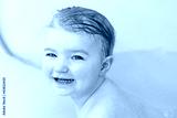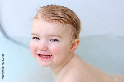 Sweet baby girl swimming in the bath