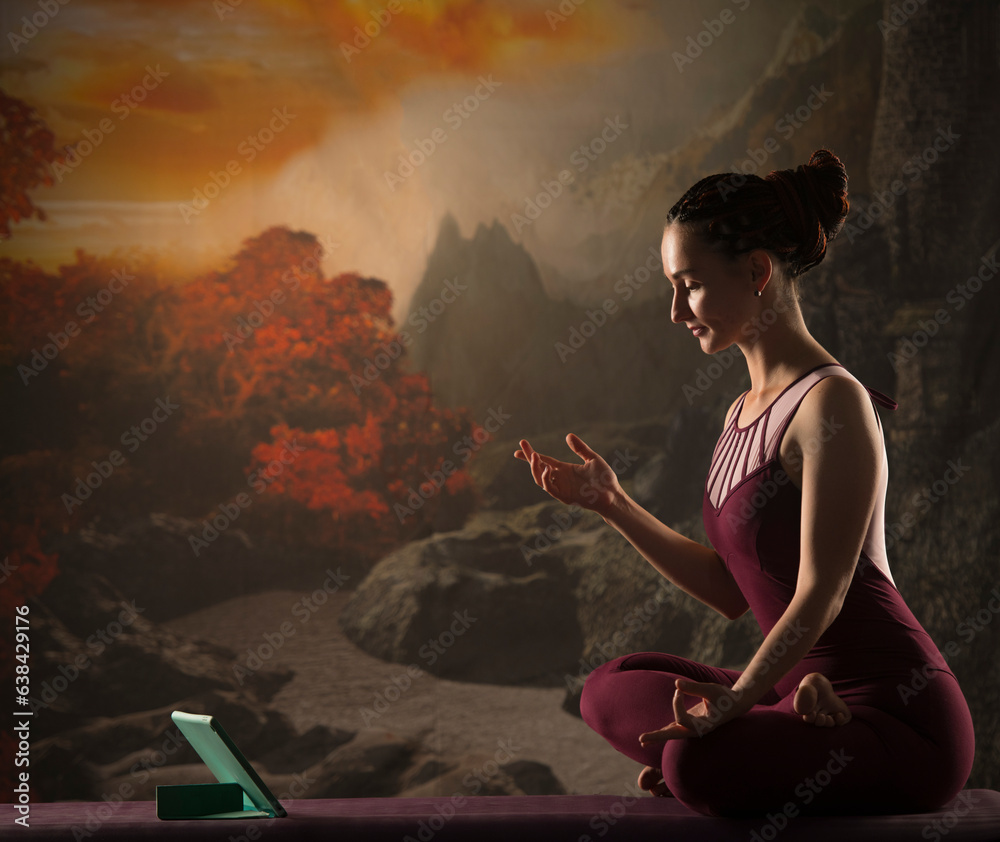 woman practicing yoga online
