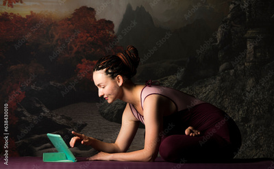 woman practicing yoga online