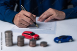 Signing a car purchase or lease agreement. Car loan and insurance concept.