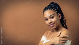Portrait of African American girl with afro hair. Beauty, cosmetics, makeup and fashion concept