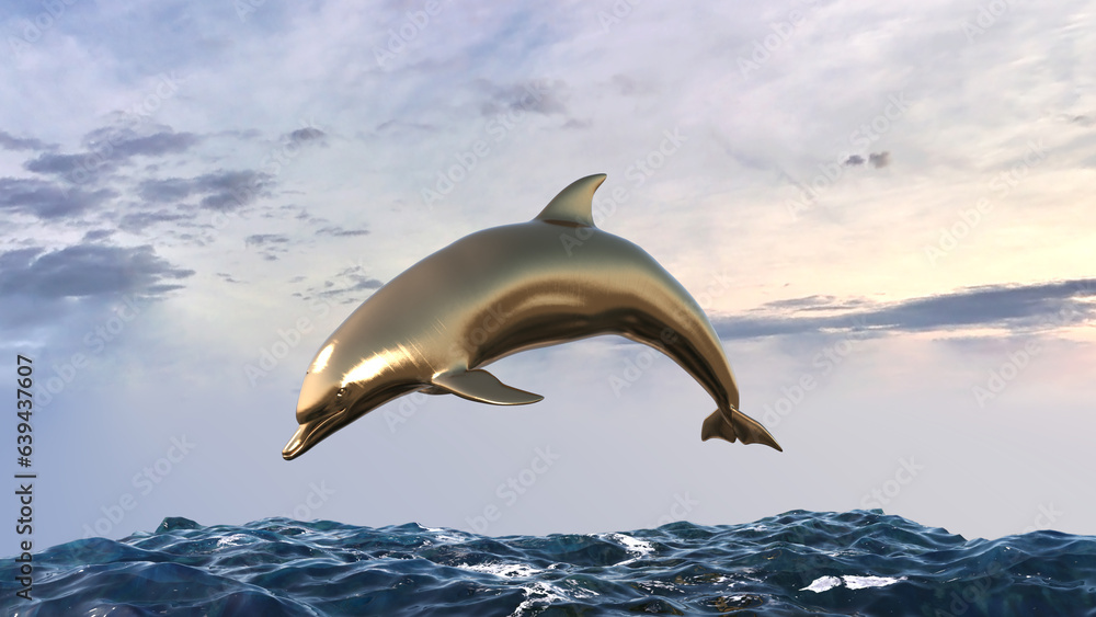 イルカ ガラス 金属 メタル 金 真鍮 ブロンズ 泳ぐ