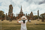 Traveler woman travel in Wat Phra Si Sanphet temple at Ayutthaya historical park Thailand