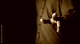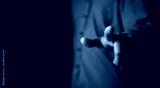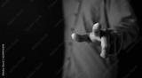 background, close up, people, hand, businessman, portrait, showing, equipment, blue, standing. picture is portrait close up to businessman, him stand and use hand for order or pointing something.