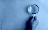 searching, securing, magnifier, icon, man, hand, blue, assurance, family, background. hold a magnifier to searching or find something at blue background. not has icon and symbolic isn't show.
