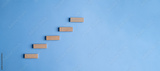 climb, goal, stair, icon, pointing, hand, blue, endeavor, background, attempt. sorting woodchip to create stair for climbing to make easy, hit the goal and mission. behind background color is blue.