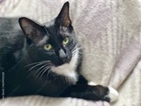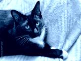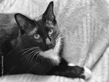 Tranquil Portrait of a Beautiful Black and White Adult Siamese Cat: A Feline with Cute Face Resting on Fluffy Plaid
