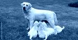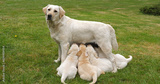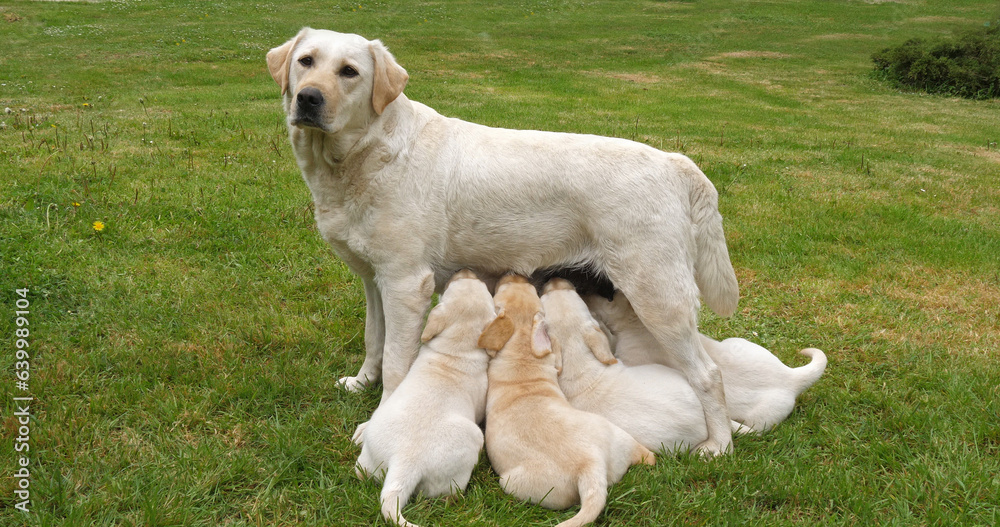 Yellow Labrador Retriever Bitch That Feeds Puppies, Suckling , Normandy in France