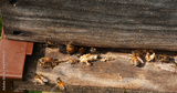 European Honey Bee, apis mellifera, cocoon of false ringworm released from the hive by the cleaners, Bee Hive in Normandy