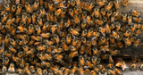 |European Honey Bee, apis mellifera, bees grazing on the hive entrance, Bee Hive in Normandy