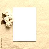 Happy birthday, mother's day, wedding composition. Blank greeting card, invitation and envelope mockup. Rectangular blank with delicate lilac flowers. Flat lay, top view. square.