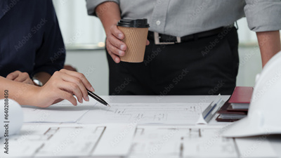 Interior architect working with blueprint planning in modern office, engineering concept. .