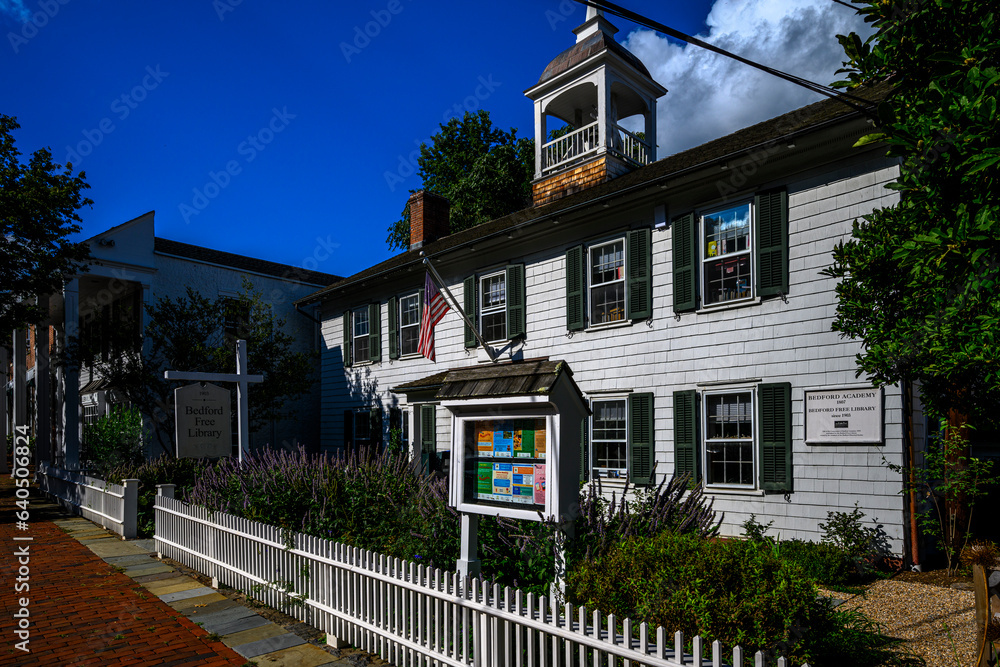 Old Post Road in Bedford Village Historic District on a sunny summer day; Bedford, NY, USA