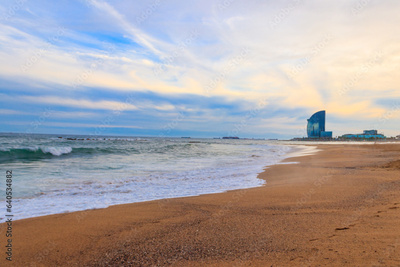 View of Barceloneta beach in Barcelona, Catalonia, Spain