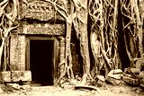 Ficus Strangulosa tree growing over doorway Ta Prohm, Angkor Wat