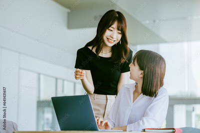 パソコンを使ってミーティングをする2人のビジネスウーマン