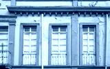 Street view of an old colonial building facade, Cuenca, Ecuador.
