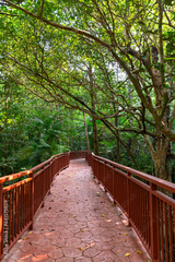 Wooden walkway and abundant mangrove forest in Southern Thailand