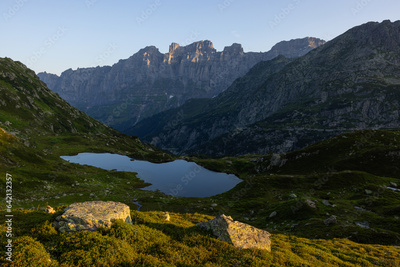 Fantastic azure alpine lake Champfer. Unusual and picturesque scene. Location famous resort Silvaplana village, district of Maloja in the Swiss canton of Graubunden, Alps. Europe. Beauty world.