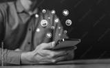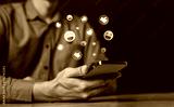 love, like, smile, message, speech bubble, balloon, discussion, social media, shape, chat. use smartphone for chatting and message. social network has like, love, speech bubble spread around that.