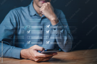 check, checklist, list, report, answer, checkbox, document, exam, plan, questionnaire, survey, tick use smart phone to check file management and checklist too not to missing important information.