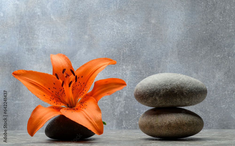 stones and flowers for the podium.zen stones and flowers for the presentation of the product, background, podium.