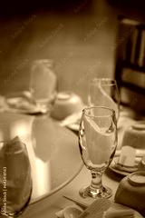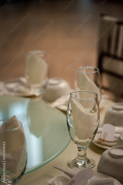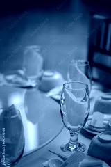 Beautiful table set for an event party or wedding reception. Served dinner table
