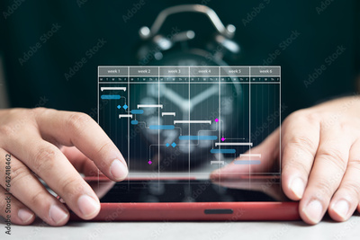 Man use phone with calendars to schedule time plan appointment. Data management system, checking organizes day, week, month project list, business, calendar appointment plan concept, time management.