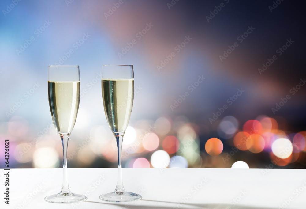 champagne Glasses and night city