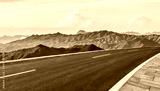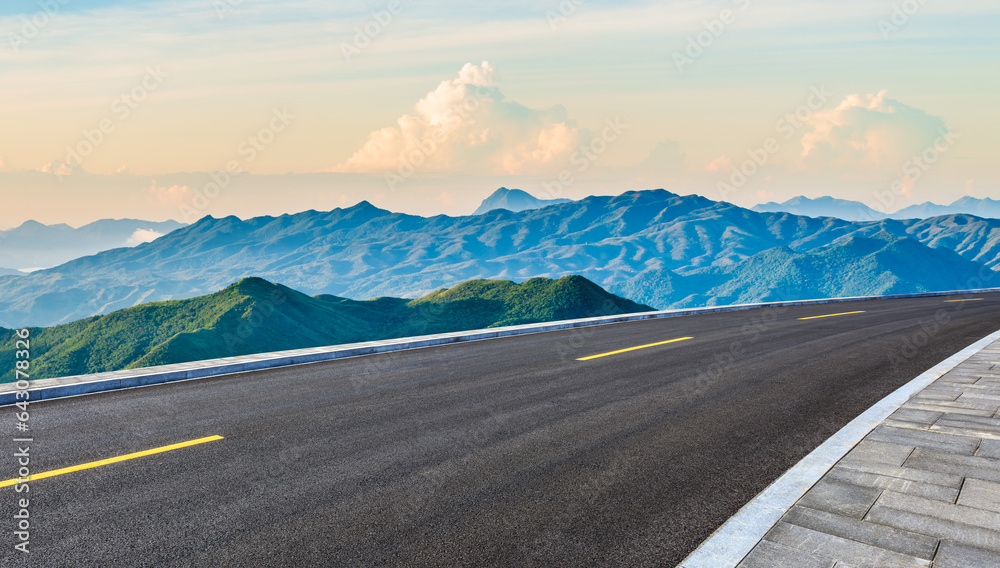 Asphalt highway road and mountain natural scenery at sunrise. panoramic view.