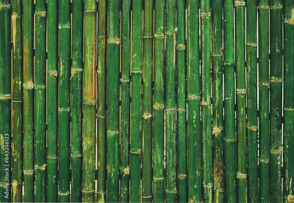Empty green bamboo natural wall panel, abstract wood background and texture. patterns, quoit, old, ancient, rotted, obsolete weathered cracked, space for work, vintage wallpaper, close up
