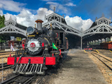 Train at the station waiting for passengers - former steam locomotive in Minas Gerais, train ride between the cities of Tiradentes and Sao Joao del Rei