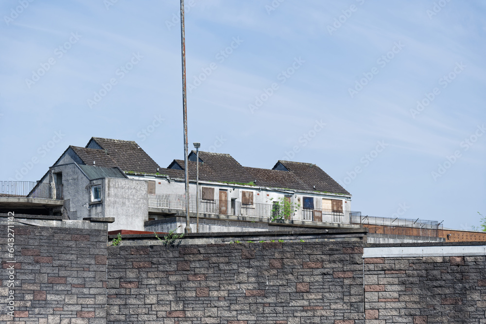 Council flats in poor housing estate with many social welfare issues in Port Glasgow