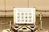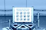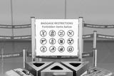 A sign displaying prohibited items at an airport security checkpoint. Luggage