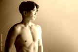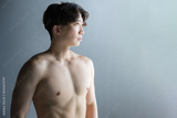 筋肉を鍛えるカッコイイハンサムな日本人男性の横顔