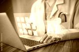 Doctor using technology AI in treatment and AI management digital document data in hospital system. Doctor AI, artificial intelligence in modern medical technology and IOT automation. Doctor using AI