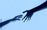 Helping hand outstretched, isolated arm, salvation. Two hands, helping arm of a friend, teamwork