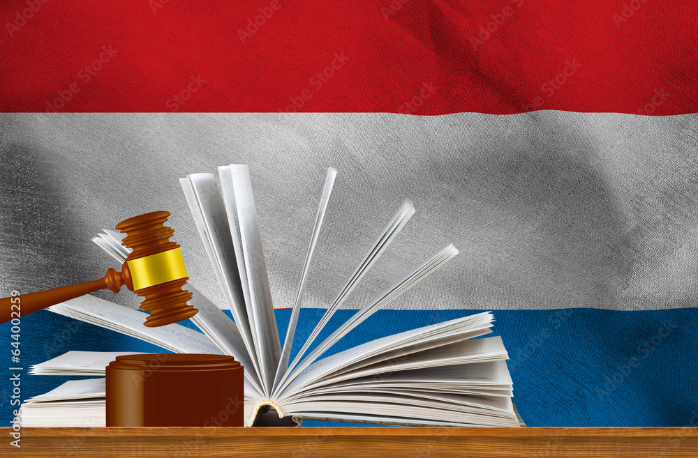 Judicial gavel on the background of an open book and the flag of Croatia.