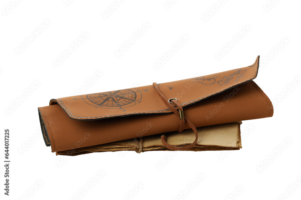 Twisted leather map, isolated on white background