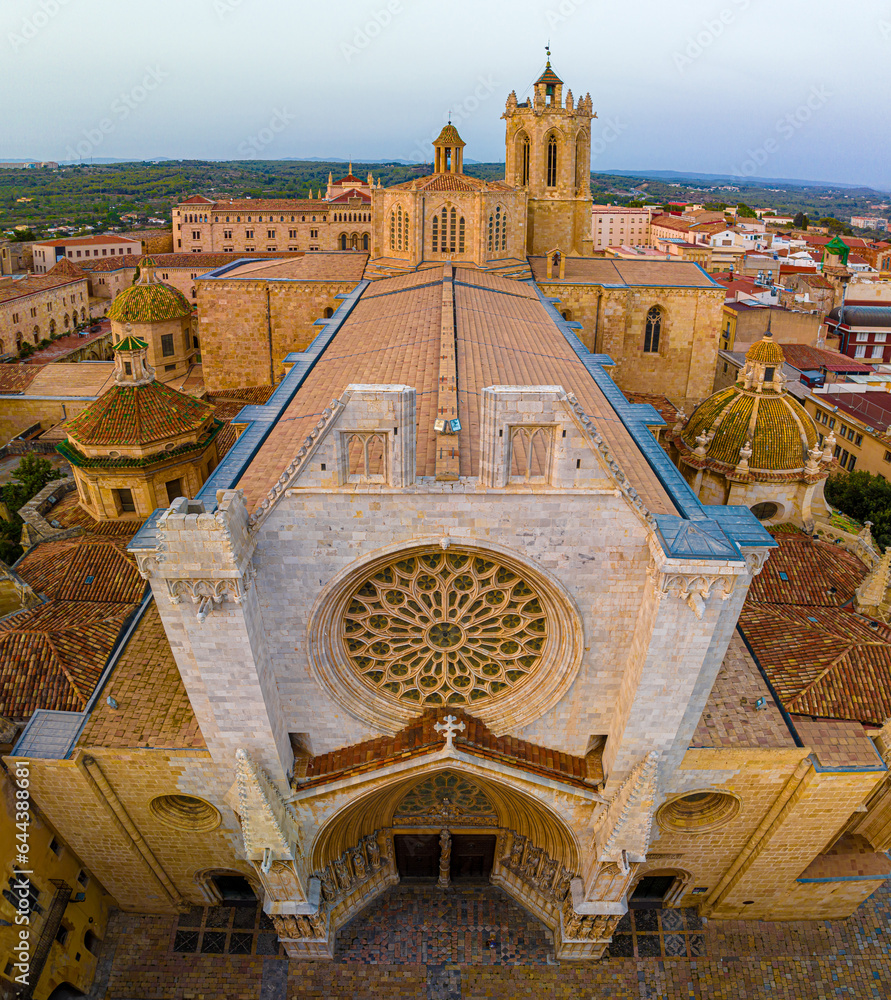 Aerial view of the Primatial Cathedral of Tarragona, a Roman Catholic church in Tarragona, Catalonia, Spain
